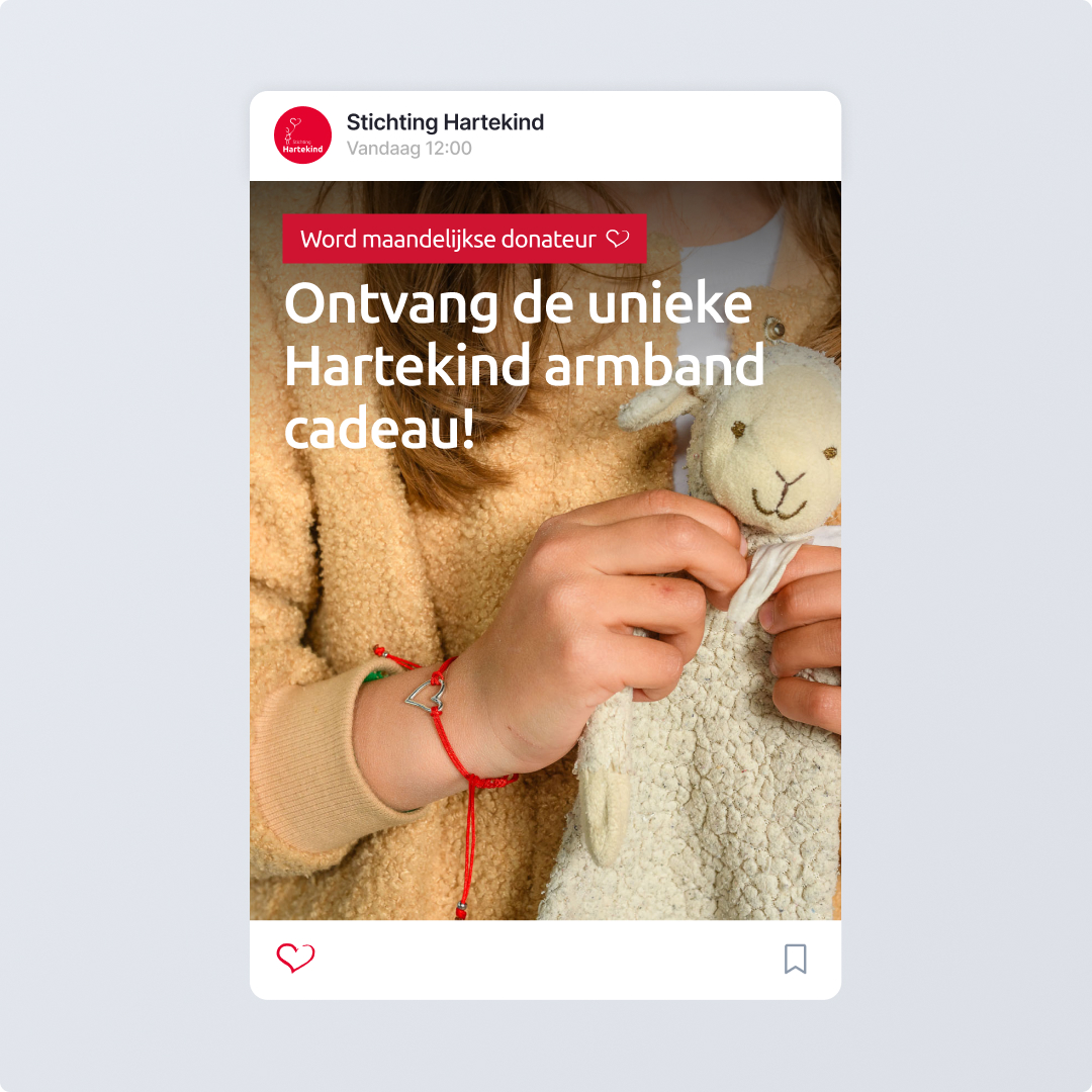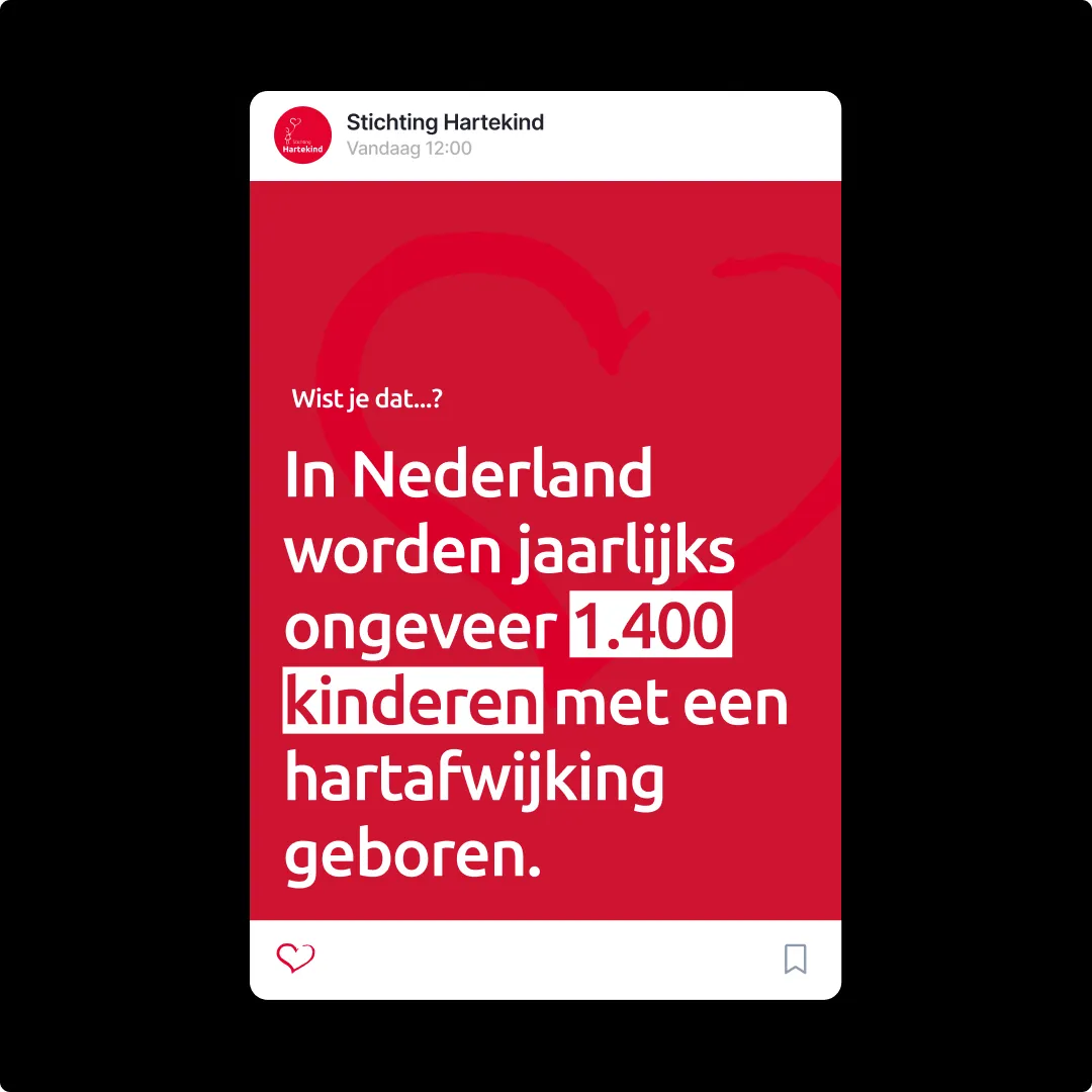 Die templates zorgen voor herkenbaarheid en continuïteit. Wat voor content er ook gedeeld wordt: het klopt. Het is herkenbaar. En het draagt bij aan een sterk, betrouwbaar online profiel dat de missie van Stichting Hartekind keer op keer onderstreept.